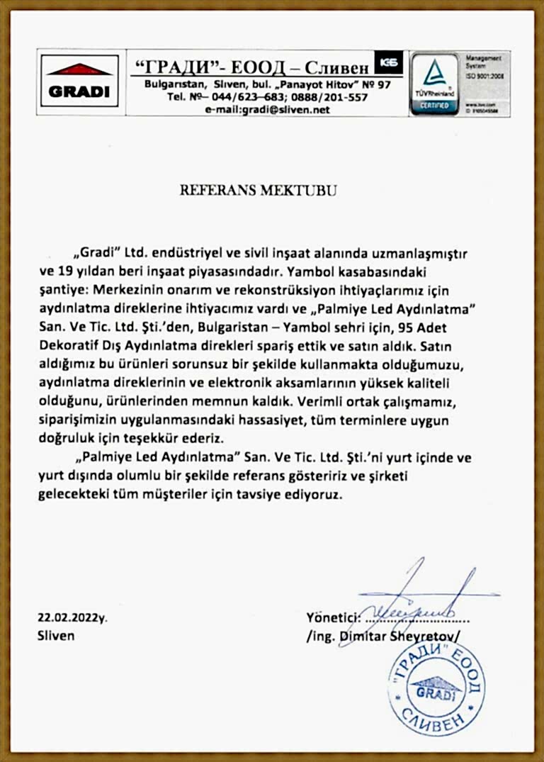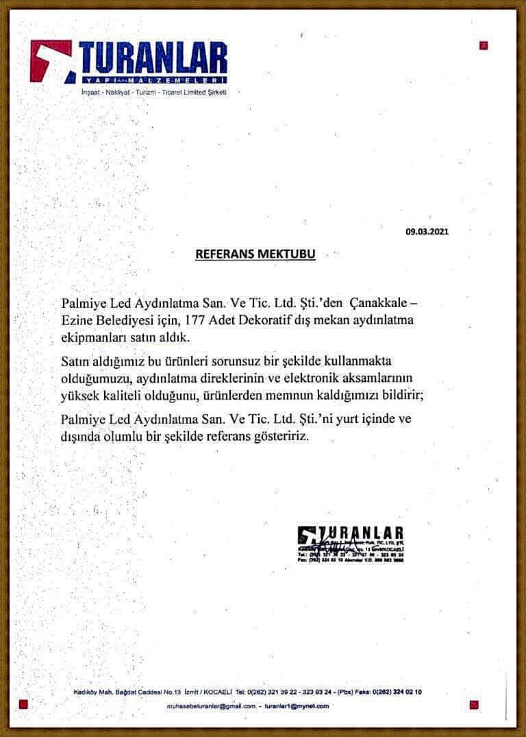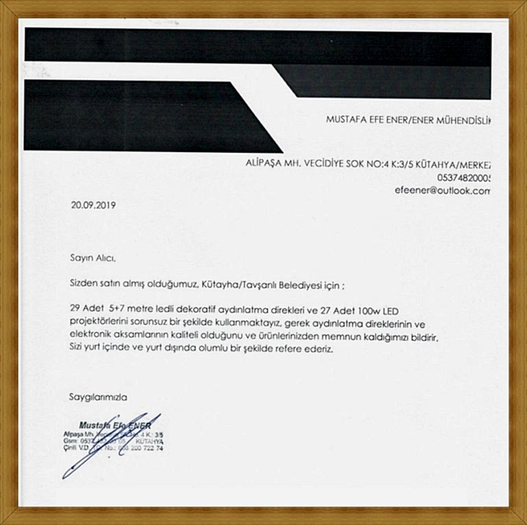 Kurumsallıkta memnuniyet ve devamlılık esastır parolası ile çıktığımız bu yolda mutlu müşterilerimizin referans mektupları..