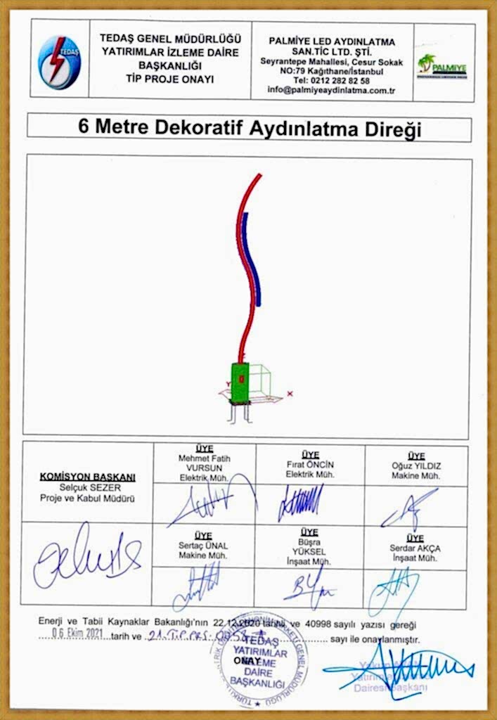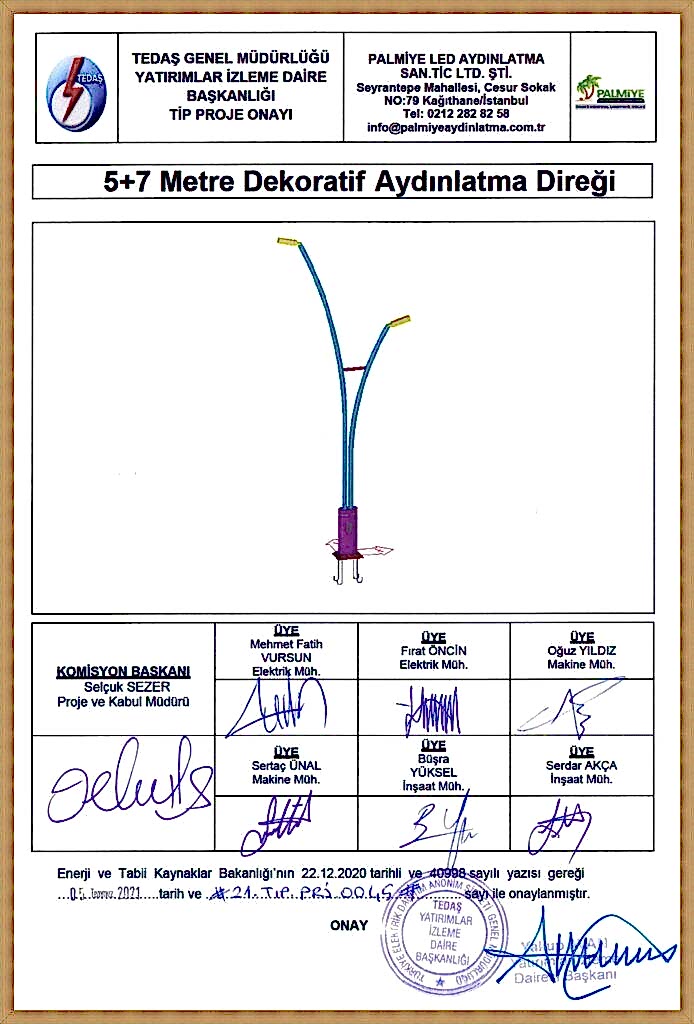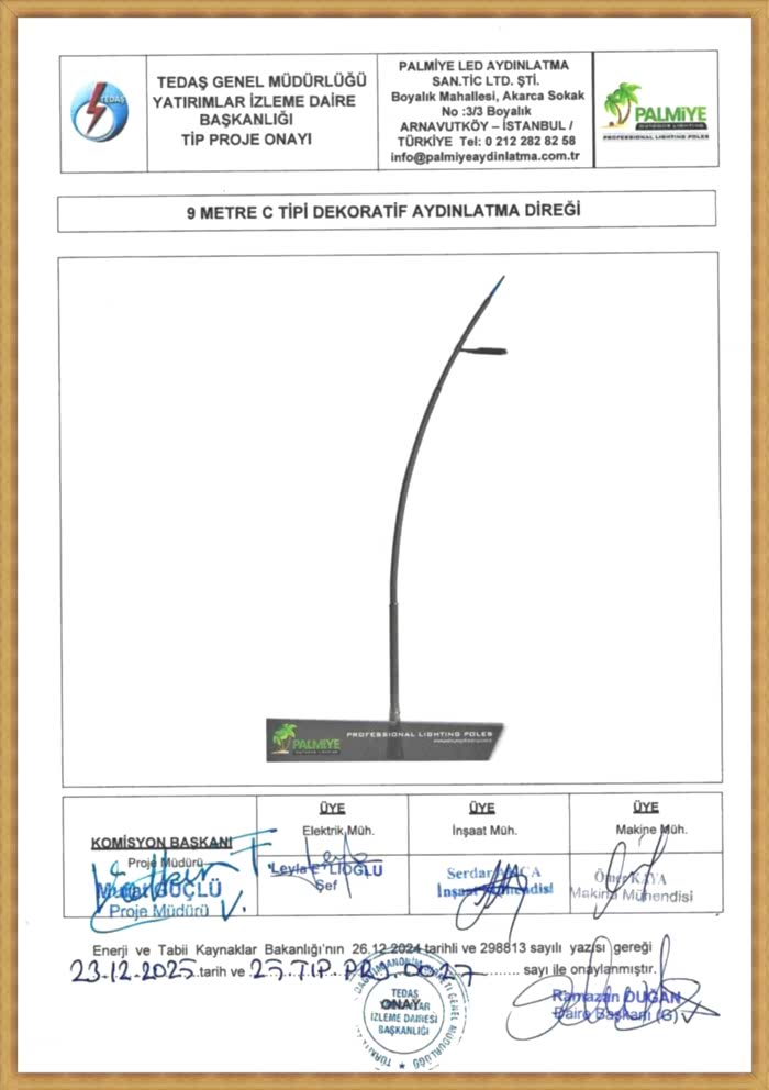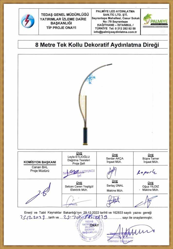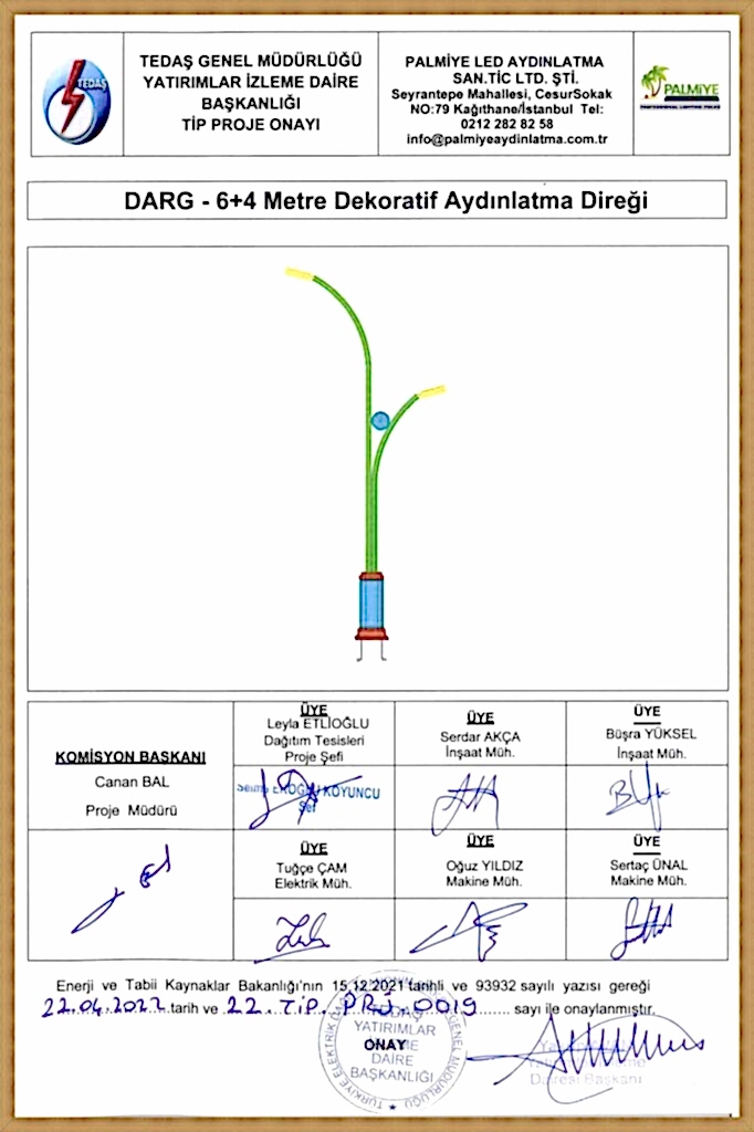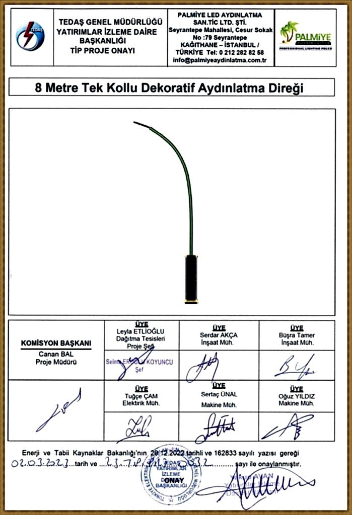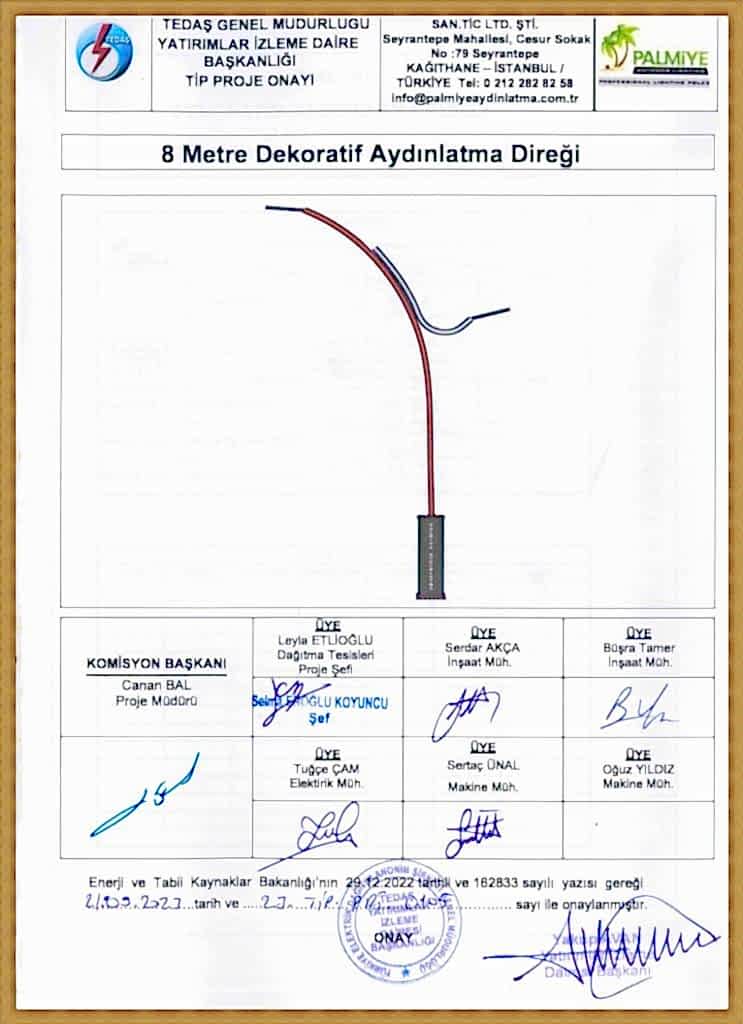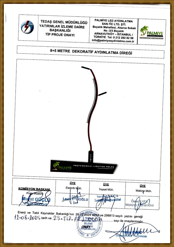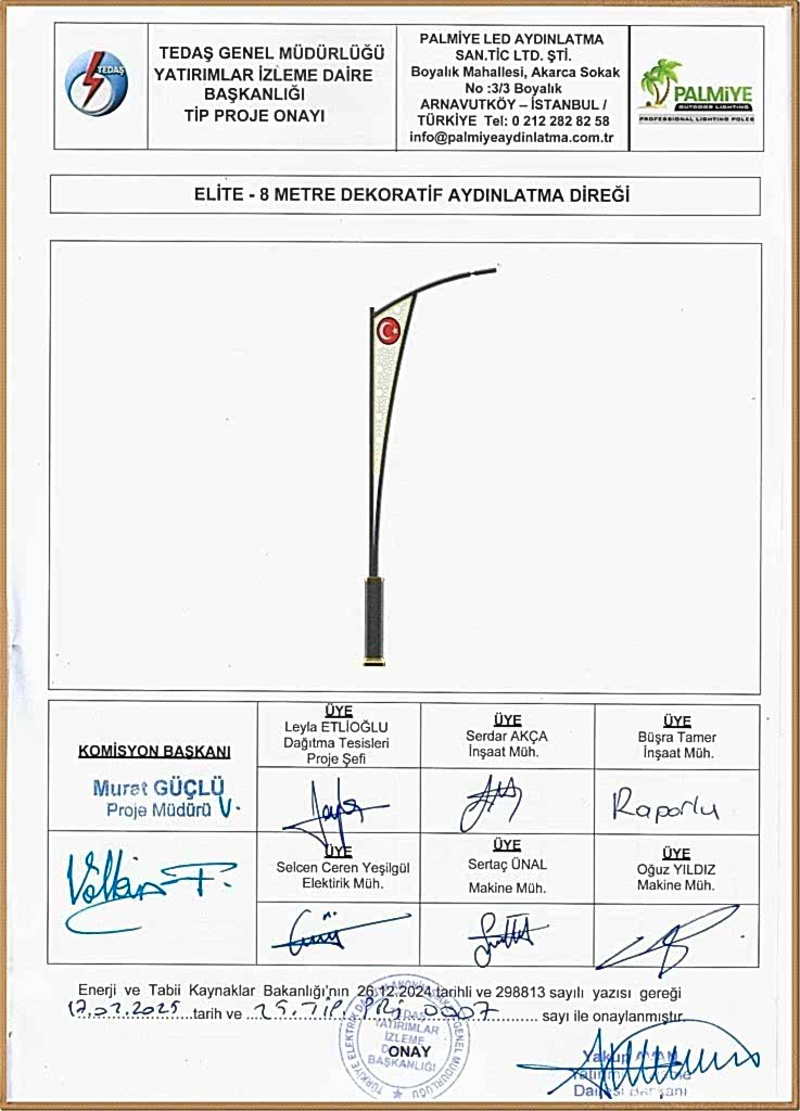 TEDAŞ Tip Proje Onaylı Aydınlatma Direkleri