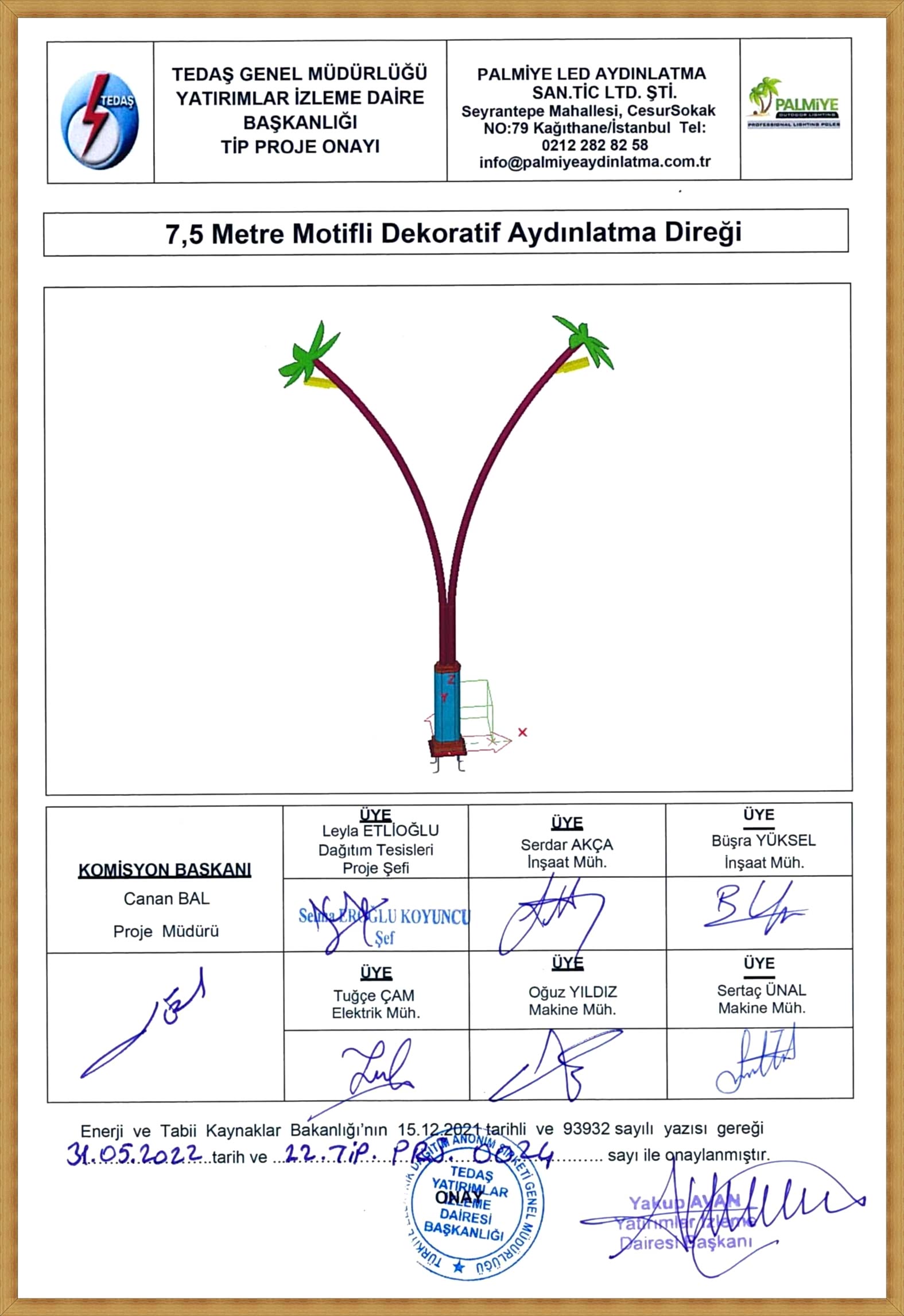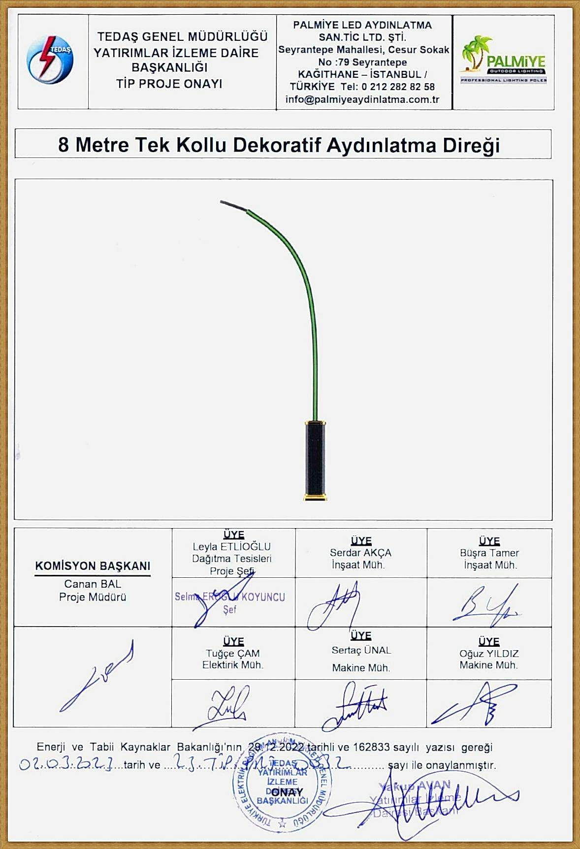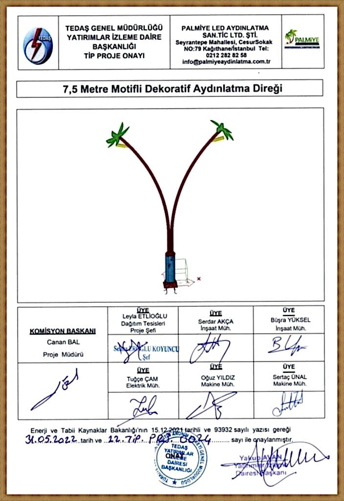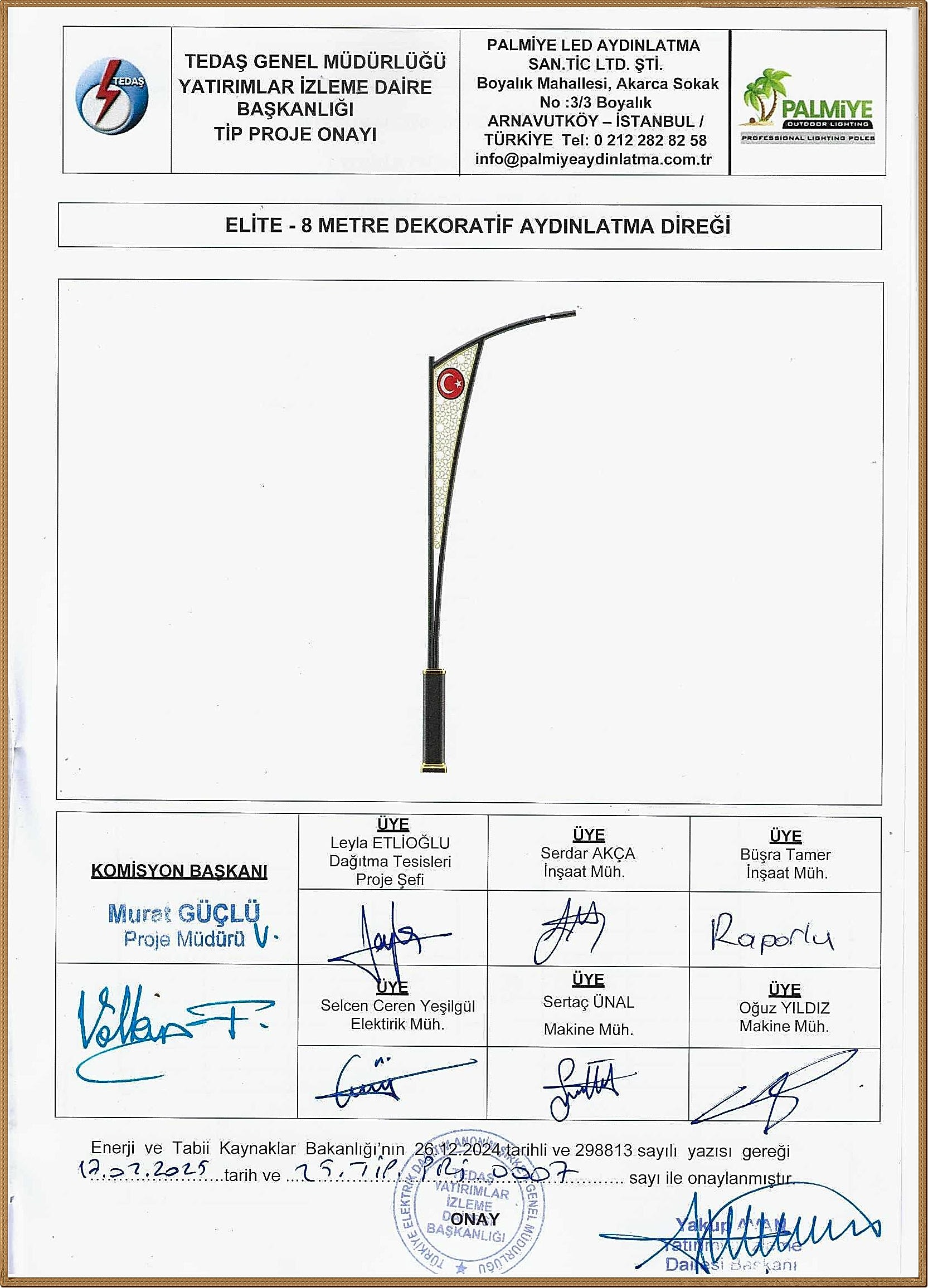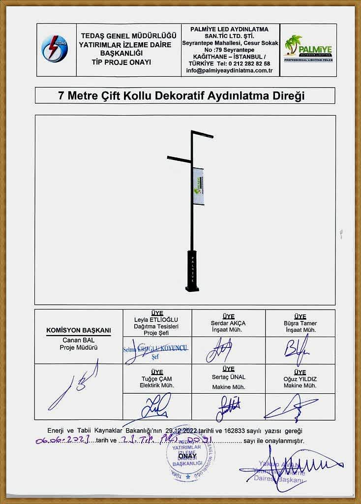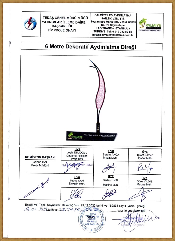 TEDAŞ Tip Proje Onaylı Aydınlatma Direkleri