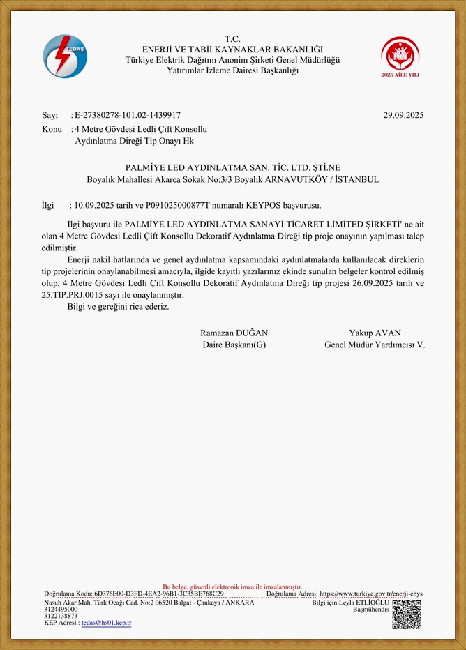 4. Kalite Güvencesi: Tip proje onayı almış aydınlatma direkleri, çeşitli testlerden geçirilerek kalite kontrol süzgecinden geçer. Bu süreç, üretici firmaların sorumluluklarını artırarak sektörde kalite çıtasını yükseltir.